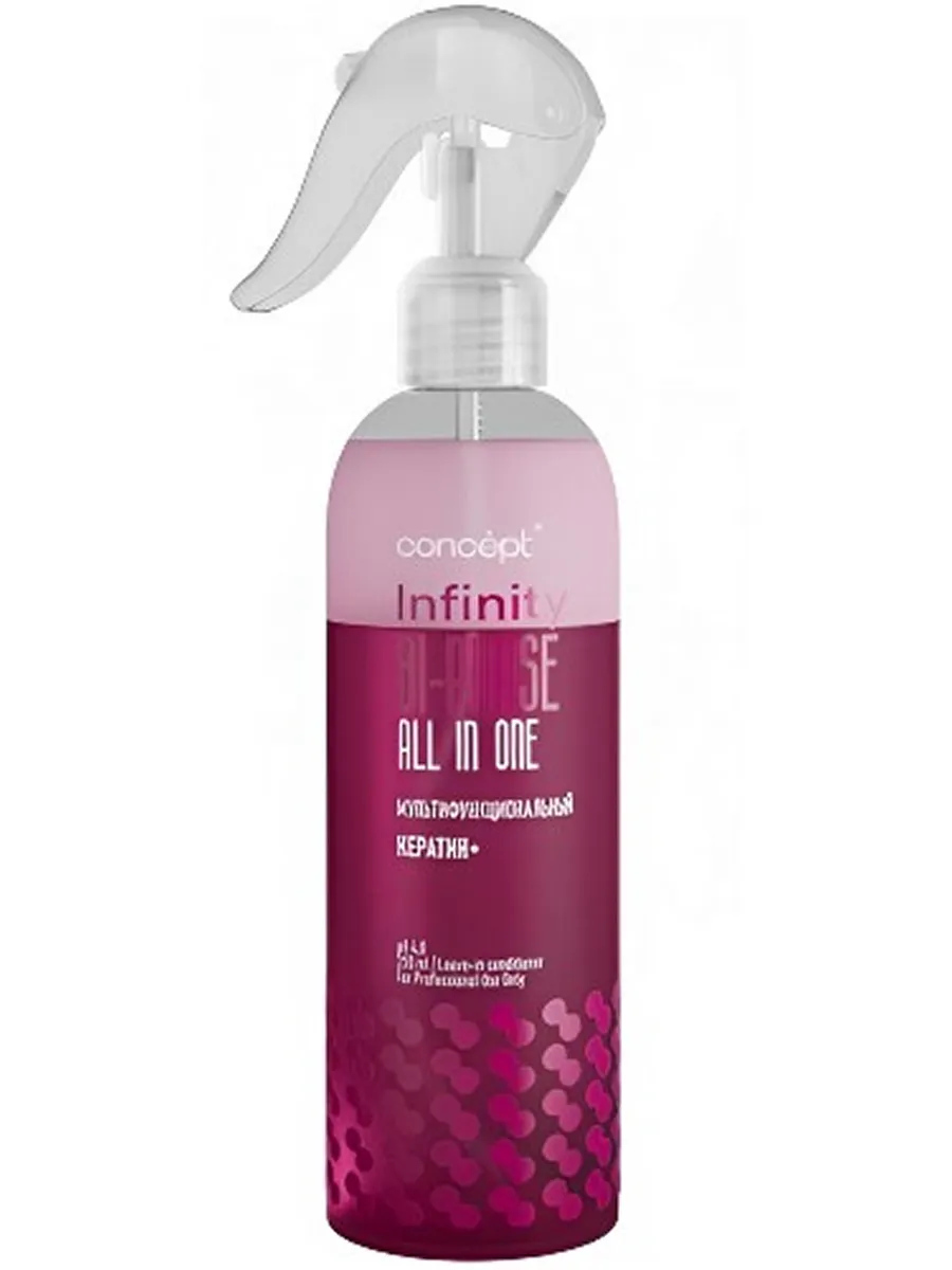 Профессиональный двухфазный мультиспрей-концентрат Concept Infinity – идеальное решение для всестороннего ухода за вашими волосами. Одного средства достаточно для интенсивного увлажнения, защиты при термостайлинге, легкого расчесывания, придания здорового блеска и антистатической защиты. Удобная упаковка объемом 250 мл позволяет всегда иметь под рукой это многофункциональное средство «все-в-одном» и наслаждаться здоровыми и ухоженными локонами ежедневно!